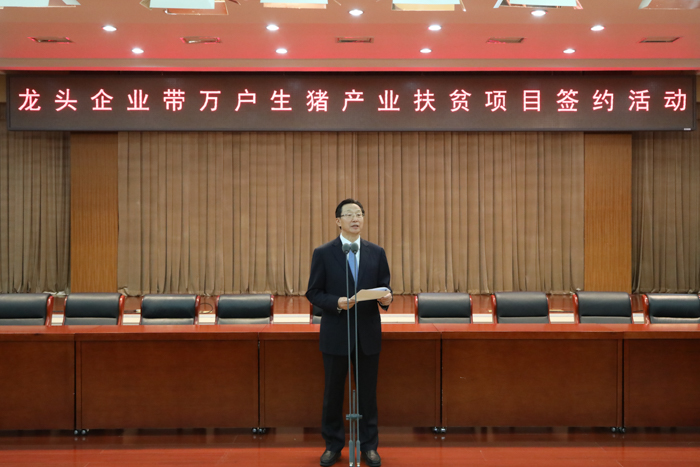 韩长赋指出,举办“龙头企业带万户生猪产业扶贫项目”集中签约活动,是贯彻落实习近平总书记重要指示精神,推进生猪稳产保供工作的具体行动,也是示范带动产业扶贫的重要举措。抓住当前生猪市场行情好的有利时机,引导大型养猪企业采取“公司+农户”、入股加盟、托管租赁等方式,到贫困地区带动中小养殖场户补栏复养,对于促进贫困地区发展产业和加快生猪生产恢复都具有重要意义。生猪养殖龙头企业要抓住机遇,抓紧落实签约项目,加快项目开工建设进度,抓紧布局改造建设一批标准化家庭猪场、生猪扩繁场、屠宰加工厂和冷链物流中心。贫困地区政府要加大支持力度,落实好中央出台的17条生猪生产扶持政策,推动签约项目尽快落地开工,形成实际产能,带动更多贫困户就地就业增收。各级各地特别是贫困地区农业农村部门要搞好支撑服务,支持龙头企业帮带中小养殖场户恢复生产,强化政策、资金、技术指导上下衔接,特别是帮助坚持不懈打好非洲猪瘟疫情防控持久战,为项目实施创造良好条件。